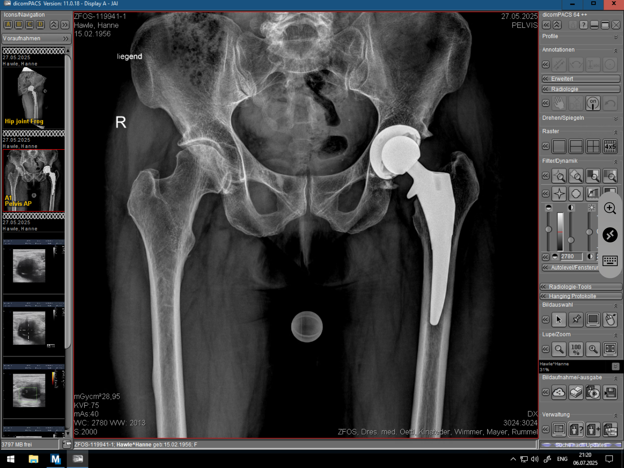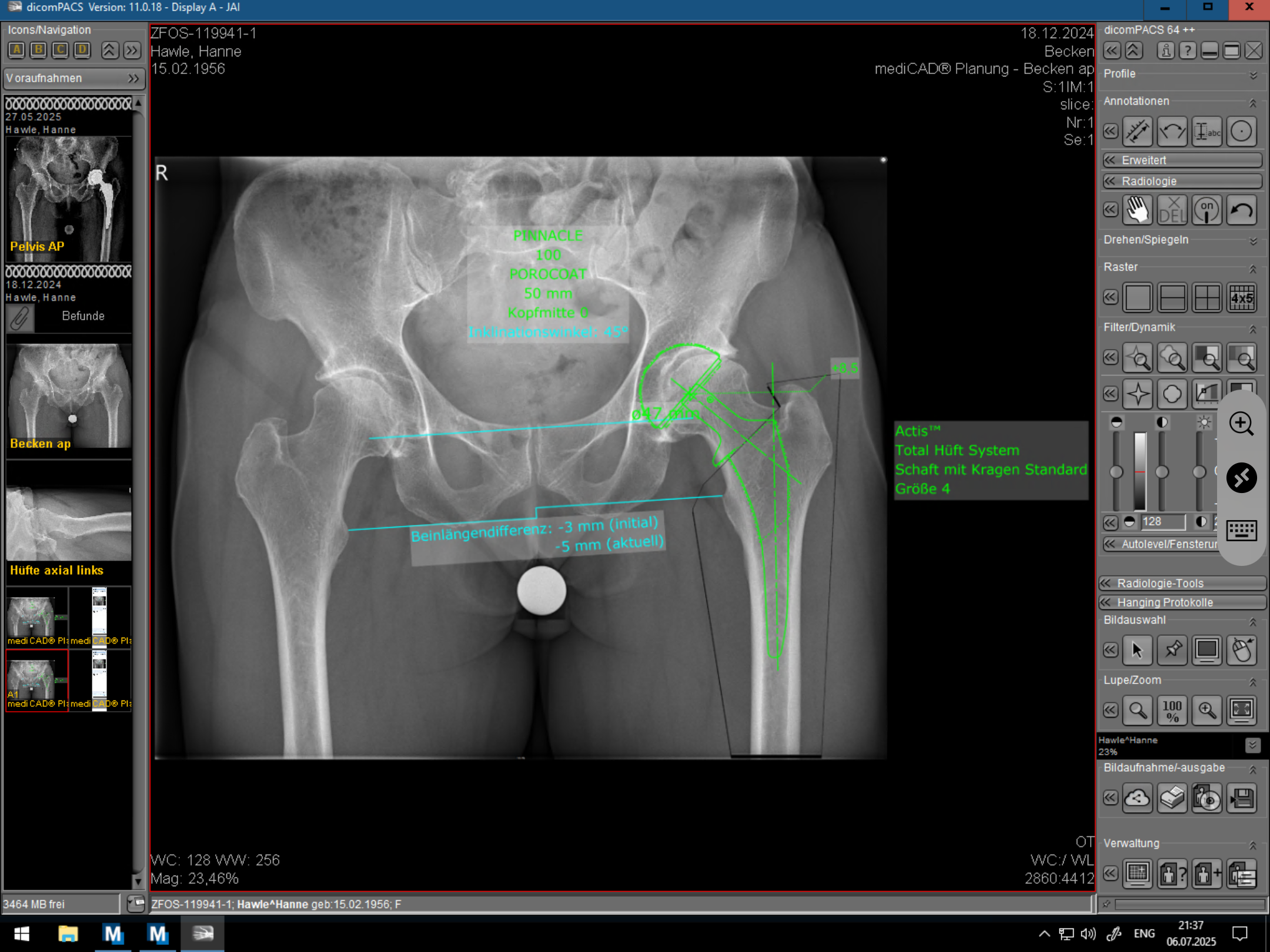 Digitale Prothesenplanung, Röntgenbild nach der OP)