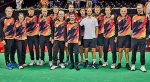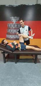Dr. Tim Kinateder und die beiden DTB Physiotherapeuten Bastian Arnold und Matthias Breuning kümmern sich seit Jahren um die medizinischen Belange des Teams. Abgesehen von gesundheitlichen Aspekten bedeuten Auswärtsspiele auch immer große logistische Anforderungen für den Mannschaftsarzt und bedürfen sorgfältiger Planung und Vorbereitung.