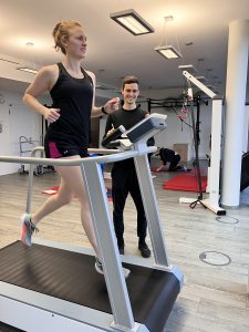 (Sportwissenschaftler Tobias Dangl mit Sportwissenschaftlerin Annika Strasser beim Lauftechnik Training)