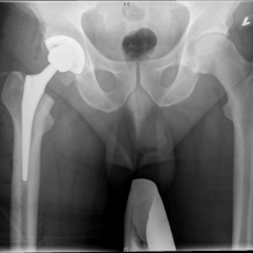 (Beitragsbild: zementfreie Hüftendoprothese im Röntgenbild)